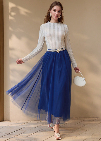 Этот свитер предлагает стильный, универсальный вид. Он имеет вязку с жемчужной отделкой. Крой oversize с круглым вырезом и рукавами с приспущенными плечами. Детали включают разрез и прозрачный дизайн. Ткань – трикотаж средней эластичности с обычной формой подола.