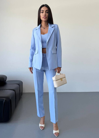 Цвет Голубой / Фасон Брючный, Тройка / Стиль Деловой, Кэжуал / Узор Однотонный / Материал Полиэстер
