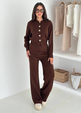 На размер 46-48 - пиджак: обхват груди 104 см, обхват талии 98 см, длина 72 см, рукав 64 см, брюки: обхват талии 76 см, обхват бедер 108 см, длина 102 см, топ: об