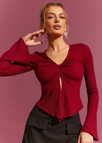 Блуза с длинными рукавами L'Amorae Valentine's Day Open Twist Front имеет привлекательный V-образный вырез и открытый дизайн спереди, включает разрез и асимметричное разделение. Ткань средней эластичности для комфортного ношения. Классический крой.
