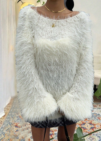 Свитер – ChicEase Blogger Style. Этот свитер оверсайз имеет свободный, пушистый дизайн из мохера. Он имеет крой с открытыми плечами и вырез лодочкой. Свитер включает в себя пушистую текстуру. Он имеет спущенный рукав и обычный подол. Ткань средней эластичности.