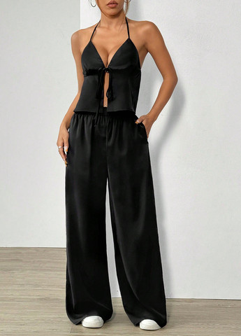 Состав 97% полиэстер, 3% эластан/подложка: 100% полиэстер; / Материал Полиэстер / Фактура Гладкая / Бренд SHEIN / Сезонность Лето / Застежка Без застежки / Принадлежность Женщинам / Страна бренда Китай / Тип карманов Без карманов / Цвет Черный
