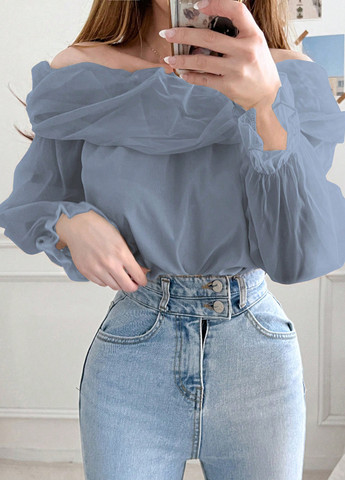 Цвет Серо-синий / Стиль Кэжуал / Узор Однотонный / Фасон рукава С открытыми плечами