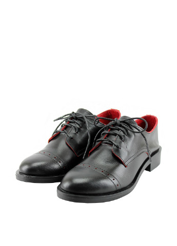 Мягкие и безподкладочные туфли выполнены из натуральной черной кожи с внешней стороны и красной с внутренней. Туфли дополнены декоративной перфорацией. За счет отсутствия уплотнителей в носочной и пяточной части обуви, туфли подойдут для любой полноты.