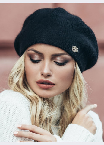 Модель одинарная с внутренним подворотом, связана тонкой гладкой вязкой. Берет выполнен из качественной пряжи, в состав которой входит натуральная шерсть и искусственные материалы. Цвет изделия черный.