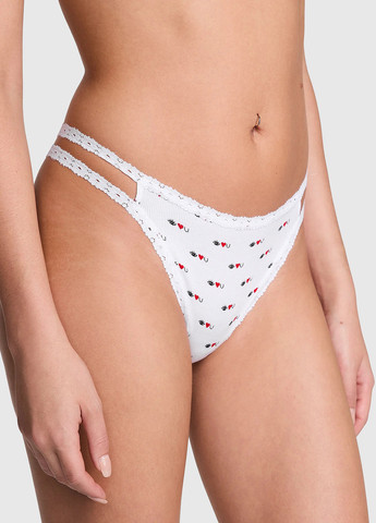 Женские хлопковые трусики тонг Victoria´s Secret Pink. Очень милые базовые трусики выполнены из эластичной хлопковой ткани в рубчик с принтом. Двойные боковые кружевные бретели придают кокетливости. Удобная модель для ежедневного ношения. Отличное качество.