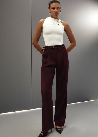 Цвет Бордовый / Материал Костюмная / Фасон Палаццо / Высота посадки Высокая талия / Узор Однотонный