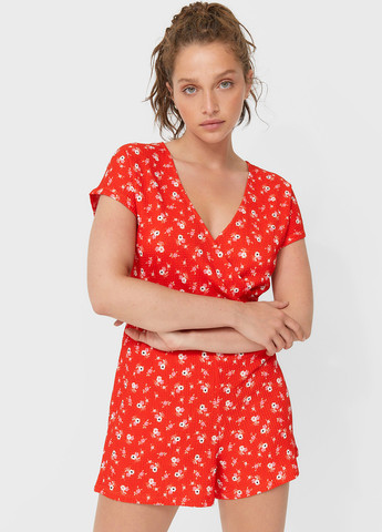 Состав 98% полиэстер, 2% эластан / Материал Полиэстер / Фактура Жатка / Бренд Stradivarius / Сезонность Лето / Застежка Без застежки / Принадлежность Женщинам / Страна бренда Испания / Тип карманов Без карманов / Цвет Красный