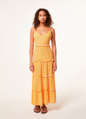 Материал Вискоза / Цвет Светло-оранжевый / Фасон С открытыми плечами / Длина изделия Миди и ниже колена / Стиль Кэжуал