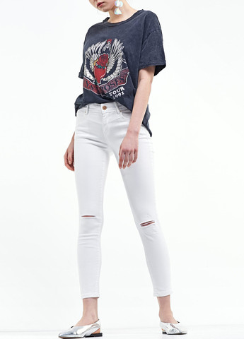 Цвет Белый / Фасон Скинни, Укороченные / Высота посадки Средняя талия / Декор Рваный / Сезонность Демисезон