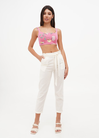 Цвет Молочный / Материал Хлопок / Фасон Укороченные, Зауженные / Высота посадки Высокая талия / Узор Однотонный