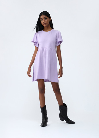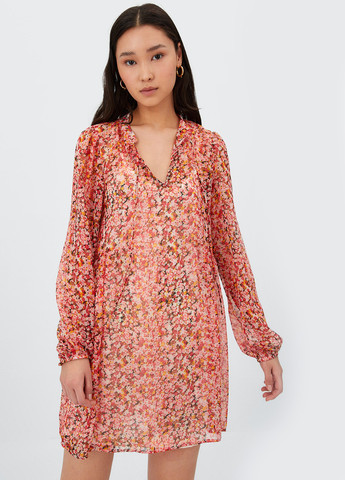 Длинное платье из тканой вискозы. V-образный вырез спереди с воланами, простирающимися от плеч к спине. Собранная кокетка на спине и собранный шов на плечах и талии. Длинные широкие рукава и украшенные воланами манжеты на пуговицах. Без подкладки.