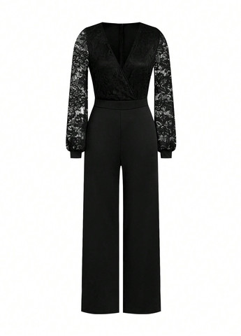 Женский комбинезон Ellevyn – изысканный выбор для особых случаев. Этот комбинезон имеет облегающий крой и привлекательную высокую талию. Детали включают дизайн с запахом, контрастные кружевные акценты и застежку-молнию. Комбинезон имеет рукава Bishop и изготовлен из ткани средней эластичности. Имеет V-образный вырез.