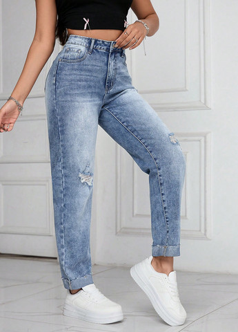 Джинсы – женские повседневные джинсы SHEIN EZwear с зауженными штанинами. Эти джинсы предлагают свободную посадку с зауженными штанинами. Они имеют стандартный крой и естественную среднюю талию. Джинсы включают карманы, разрывы и застежку-молнию. Изготовлены из слегка эластичной ткани для комфорта.