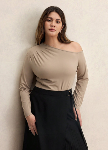 Асимметричная блузка BizChic цвета хаки с асимметричным вырезом облегающего кроя. Она изготовлен из эластичной ткани. Блуза имеет длинные рукава и дизайн с открытыми плечами.