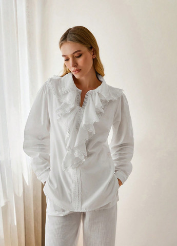 Женская хлопковая блузка Cottnline с вышивкой и оборками, длинными рукавами.