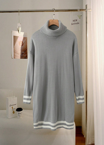 Материал Акрил / Цвет Серый / Фасон Платье-свитер / Длина изделия Мини / Стиль Кэжуал