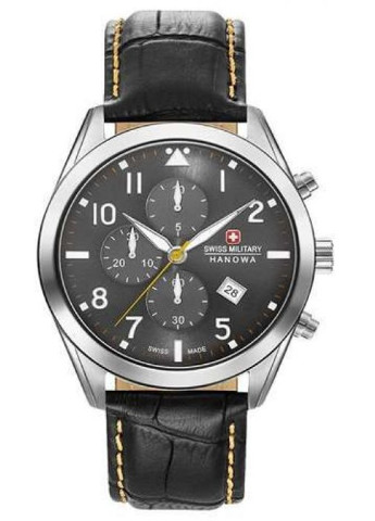 Тип ремешка: Кожаный; Производитель: Swiss Military-Hanowa; Пол: Мужские; Тип индикации: Аналоговые; Стиль: Классика; Стекло: Сапфировое; Цвет: Графитовый; Размер, мм: 43 мм.; Форма корпуса: Круглые; Страна производитель: Швейцария; Гарантия: 24 месяцев; Механизм: Кварцевые; Материал корпуса: Нержавеющая сталь; Водонепроницаемость: 10 ATM; Цвет корпуса: Серебристый; Цвет ремня: Черный;