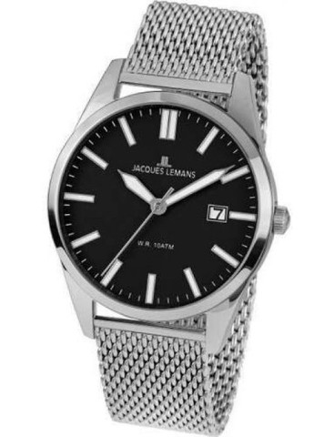 Тип ремешка: ; Производитель: Jacques Lemans; Пол: Мужские; Тип индикации: Аналоговые; Стиль: Классика; Стекло: Минеральное; Цвет: Черный; Размер, мм: 40 мм.; Форма корпуса: Круглые; Страна производитель: Австрия; Гарантия: 24 месяцев; Механизм: Кварцевые; Материал корпуса: Нержавеющая сталь; Водонепроницаемость: 10 ATM; Цвет корпуса: Серебристый; Цвет ремня: Серебристый;