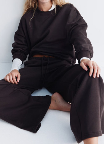 Костюм из свитшота и брюк-джоггеров из мягкого флиса с начесом. Свитшот с длинными рукавами имеет ребристый круглый вырез, спущенные плечи, ребристые манжеты и разделение. Брюки-джоггеры имеют эластичный пояс на шнурке, незаметные боковые карманы и широкие штанины.