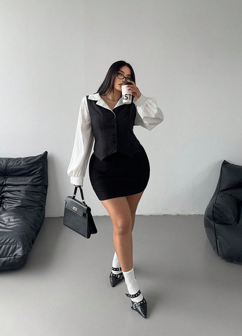 Цвет Черно-белый / Стиль Кэжуал / Узор Колор блок / Фасон рукава Фонарик