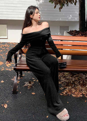 Цвет Черный / Фасон Брючный / Стиль Кэжуал / Узор Однотонный / Материал Полиэстер, Трикотаж