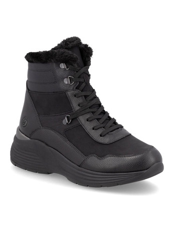 Повседневные ботинки Rieker арт. N2504-00 | Код: 013836 | Сезон: Зима | Застёжка: шнуровка,молния | Материал верха: экокожа,текстиль | Подкладка: искусственный мех | Каблук: танкетка низкая,платформа | Вид стельки: съёмная стелька байка | Высота каблука: 5,3 см. / Толщина подошвы: 3,5 см. / Материал подошвы: EPR облегченная резина | Высота голенища/задника: 10 см. / Высота обуви с каблуком: 16 см. / Технологии: lose Einlage Soft | Название материала верха: Mogadischu/Rabbit | Цвет производителя: schwarz/nero//schwarz/black | Полнота: F+ (6,5)