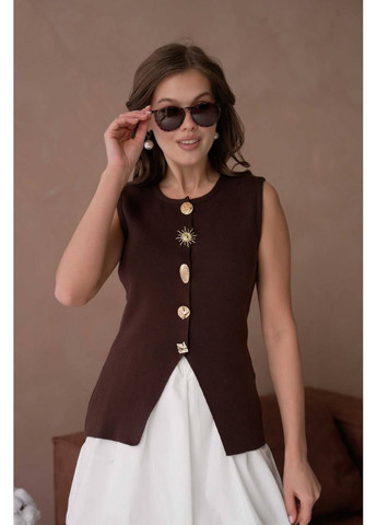 💜 Стильный ЖИЛЕТ с золотыми пуговицами – элегантный акцент в твоем гардеробе Этот жилет – сочетание элегантности и современного стиля. Необычные золотые пуговицы придают образу изысканности и подчеркивают твою индивидуальность. Модель имеет универсальный размер и отлично садится по фигуре благодаря продуманному крою. Идеально подходит для классических брюк, юбок или джинсов — для работы, вечерних выходов или особых событий 💫 🔍 Подробности: ▪️Производитель: Турция ▪️Размер: универсальный (подходит на S–M) ▪️Цвет фурнитуры: золото ▪️Фасон: приталенный ▪️Сезон: демисезон 📏Размерная сетка (по изделию): Объем груди: 80-100 см Длина изделия: 56 см Размерная сетка в конце описания.
