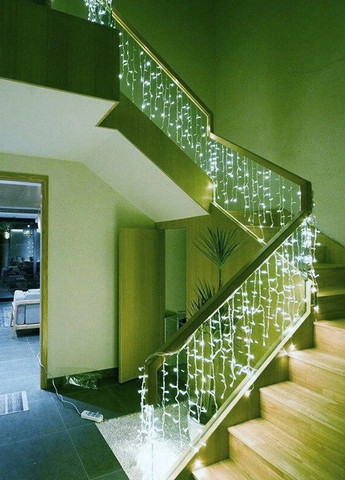 Количество LED-96. Длина 3 м. 16 нитей. Длина нитей от 25 до 55 см. Длина кабеля питания 60 см. 8 режимов свечения. Провод прозрачный. Данные LED-гирлянды можно совмещать между собой, что позволяет нарастить гирлянду в длину. Степень защиты прибора (IP) – 44. Гирлянда безопасна, у LED-лампочек огромный срок годности, а также они очень экономичны. Электрогирляндой этого вида можно украсить окно, стену, зеркало и многие другие предметы внутри помещения, а также использовать для отделки дома снаружи.