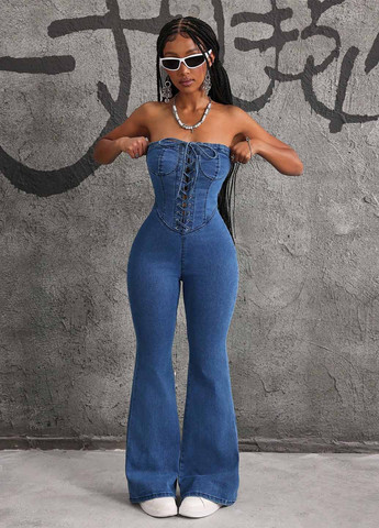 Этот джинсовый комбинезон выглядит непринужденно и стильно. Высокая талия и облегающий крой. Комбинезон изготовлен из джинсовой ткани средней эластичности. Вырез без бретелек, укороченная длина. Подходит для сценических и концертных мероприятий. Рекомендуется машинная стирка или профессиональная химчистка.
