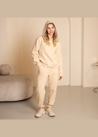 Этот стильный и теплый костюм выполнен из турецкой тринитки на флисе, что гарантирует вам комфорт и уют даже в самые холодные дни. Мягкий флис внутри обеспечивает ощущение тепла и нежности, а материал не скатывается и не теряет свой яркий бежевый цвет даже после многочисленных стирок. Костюм оснащен манжетами на рукавах и штанах, что позволяет комфортно носить его в любую погоду и предотвращает проникновение холода. Капюшон добавляет дополнительную защиту и делает костюм еще более практичным. Бежевый цвет является универсальным и легко комбинируется с другими элементами вашего гардероба, добавляя элегантности и уюта. Идеальный для ежедневного ношения, прогулок на свежем воздухе или активного отдыха, этот костюм станет надежным и стильным спутником в любой ситуации. Количество вариантов для его носки множество - от отдыха дома до активных прогулок или занятий спортом.