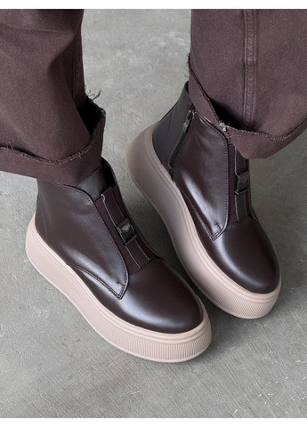 Зимние ботинки из натуральной кожи – стильная классика в глубоком шоколадно-коричневом оттенке. Модель отличается лаконичным дизайном и продуманными деталями, сочетающими эстетику и комфорт.
