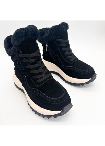 Женские зимние ботинки выполнены из натуральной черной замши, что придает образу стильности и благородства. Внутри модель утеплена набивной шерстью, обеспечивающей комфорт и надежную защиту от холода даже в морозные дни. Высокая шнуровка позволяет хорошо зафиксировать стопу, а мягкий ворсистый верх создает дополнительные ощущения тепла. Утолщенная подошва высотой 5 см с рельефным протектором гарантирует устойчивость и амортизацию во время ходьбы, делая обувь удобной для ежедневного использования. Это сочетание практичности, тепла и современного дизайна станет отличным выбором для зимы.
