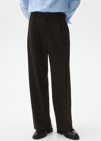 Элегантные брюки со складками из мягкой ткани с застёжкой на молнию, потайную пуговицу и крючок. Косые боковые карманы, прорезные карманы сзади и широкие брючины с заутюженными складками. Свободный крой, свободный, но не слишком свободный силуэт.
