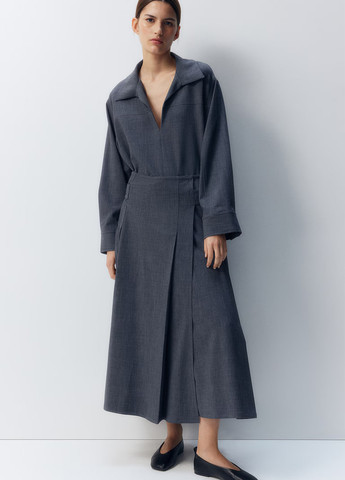Цвет Серый / Фасон На запах, А-силуэт / Высота посадки Высокая талия / Длина изделия Макси / Материал Полиэстер