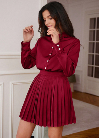 Комплект RueChic из бежевого атласа. Этот элегантный комплект состоит из бежевого атласного блузы на запах и брюк в тон. Верх имеет отложной воротник и длинные рукава. Брюки длинные и без подкладки. Этот комплект подходит для официальных и вечерних мероприятий. Инструкции по уходу: машинная стирка, не подвергать химчистке.
