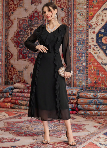 Цвет Черный / Материал Полиэстер / Узор Однотонный / Декор Пайетки / Стиль Коктейльный, Кэжуал