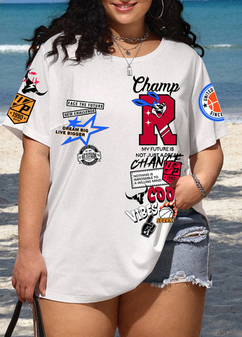 Футболка с длинным рукавом SHEIN CURVE+. Эта повседневная футболка с круглым вырезом и короткими рукавами изготовлена из высокоэластичного трикотажного полотна на основе полиэстера и эластана. Футболка имеет свободный крой и удлиненную форму. Доступна с графическим рисунком. Машинная стирка с мягким моющим средством; не подвергать химчистке.