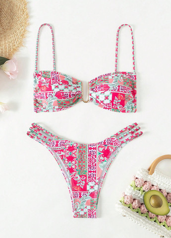 Купальный комплект бикини Swim DD+ из трёх частей. Этот комплект включает в себя бюстгальтер пуш-ап, трусики и юбку с высоким вырезом. Он идеально подходит для пляжа и отдыха. Бюстгальтер обеспечивает закрытие чашки на 3/4. Юбка имеет низкую талию и завязывается. Машинная стирка, химчистка запрещена.