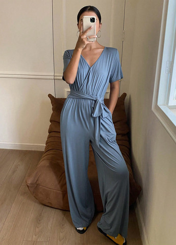 Этот комбинезон имеет стандартный крой. Он включает в себя пояс, дизайн с запахом. Комбинезон имеет стандартные рукава и слегка эластичную ткань. Вырез горловины — V-образный.