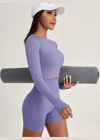SHEIN Sport Studio 2шт. Бесшовные быстросохнущие высокорастяжимые наборы для бега Тренажерный костюм с отверстиями для больших пальцев Верхние шорты с широким поясом Женский набор для тренировок Женские леггинсы