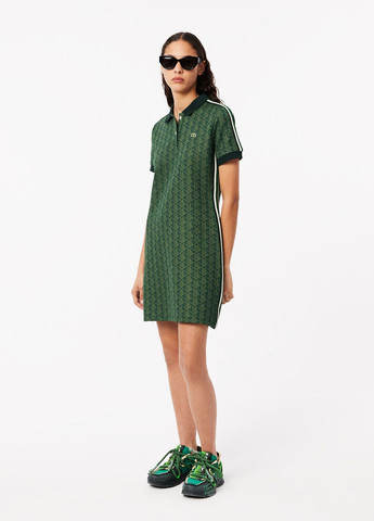 Культовый дизайн с знаковым мотивом. Это платье, созданное по мотивам мужского поло Original L.12.12, изготовлено из жаккардового трикотажа с монограммой Lacoste. Платье с полосатыми манжетами на рукавах и пуговицами из натурального перламутра станет незаменимым дополнением к любой коллекции женской спортивной одежды. Жаккардовый трикотаж из переработанного полиэстера и органического хлопка. Ребристый воротник. Настоящие перламутровые пуговицы. Вышитый крокодил на груди.