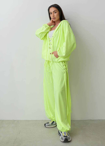 Теплый спортивный костюм из трехнитки на флисе, который не кашлатится, станет вашим надежным спутником в прохладную погоду. Худи с капюшоном оснащено двумя кнопками на горловине, которые надежно защищают от холода и обеспечивают дополнительное тепло. Длинные рукава с манжетами гарантируют комфортную посадку и сохраняют тепло. Брюки с высокой посадкой на резинке подчеркивают талию и обеспечивают удобство. Практичные боковые карманы добавляют функциональности. Идеальный вариант для ежедневного ношения.