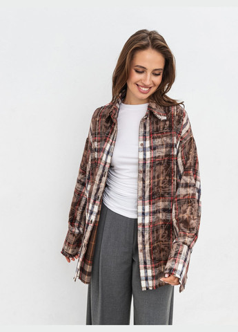 Трендовая рубашка свободного кроя с актуальным вываренным эффектом. Модель с длинным рукавом и удлиненным манжетом. Имеет необработанный край. Застегивается на ряд пуговиц. Принт в клетку в клетку. Рубашка изготовлена из приятной на ощупь байки. Идеальный вариант для осенних луков. Комбинировать рубашку можно с кожаными брюками, классическими или оверсайз джинсами. С-М Длина по спине: 77 см Длина рукава: 55 см Полуобхват груди: 50 см Плечи: 52 см Полуобхват талии: 49 см М-Л Длина по спине: 74 см Длина рукава: 53 см Полуобхват груди: 56 см Плечи: 58 ​​см Полуобхват талии: 58 ​​см