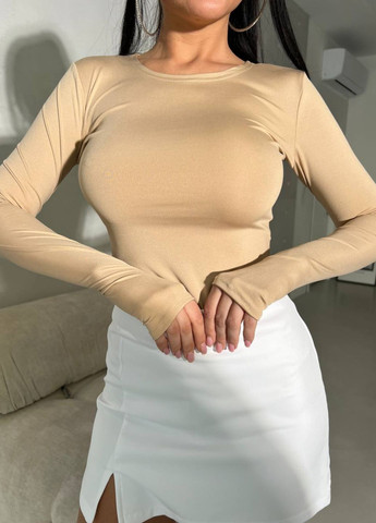 Удобный и стильный боди. Прекрасно подходит под юбку и джинсы. Особенности: Длинные рукава с вырезом для пальчиков. Воротник – стойка. Застёгивается на молнию. Ткань: Микродайвинг.