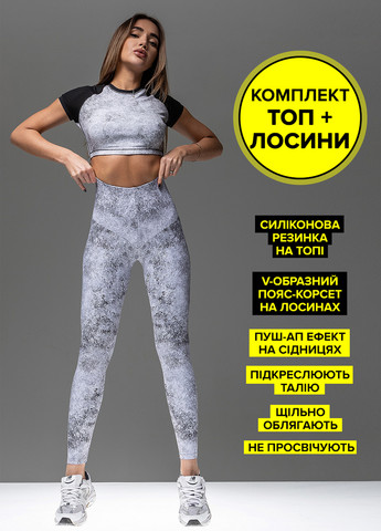 Комплект топ и лосины – это идеальное сочетание комфорта, поддержки и стиля для активных девушек. Топ будет удобен при интенсивных нагрузках в зале или на улице, благодаря плоским швам и силиконовой резинке по низу. Силиконовая резинка помогает топу оставаться на месте, подчеркивая форму и добавляя дополнительный комфорт, даже во время интенсивных упражнений. Лосины с утяжкой и эффектом пуш-ап на ягодицах – это идеальный вариант для тех, кто хочет получить комфорт и эстетичный вид одновременно. Они выполнены из плотной и эластичной ткани, которая обтягивает фигуру, придавая ей подтянутый вид.