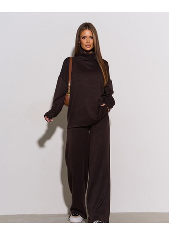 Свободный костюм с воротником-стойкой, изготовленный из трикотажной ангоры. Толстовка прямого кроя с приспущенными с плеч длинными рукавами. Сбоку расположены небольшие разрезы. Брюки свободного широкого кроя с поясной резинкой и карманами. Полуобхват: Кофта: Грудь: S(50), M(52), L(54), XL(56), XXL(58), 3XL(60), Длина изделия - 67, Рукав - 53, Брюки: Талия: S(28-38), M(30-43,4) (36-46), 3XL (38-48), Бедра: S (50), M (52), L (54), XL (56), XXL (58), 3XL (60), Длина изделия - 104, Длина по внутреннему шву - 74, Ткань: Высокая.