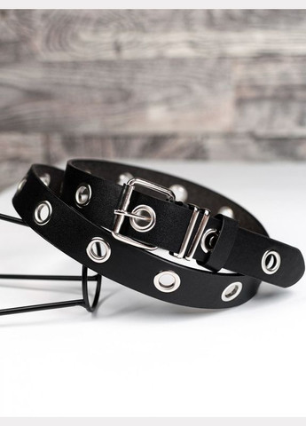 Черный ремень с люверсами. Длина изделия: 118 см, ширина: 3 см.