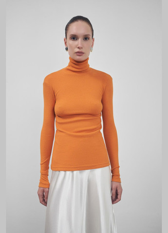 Теплый гольф оранжевого цвета из ангоры в рубчике. Комфортно садится по фигуре, хорошо тянется. Базовая модель гардероба с высокой горловиной. Параметры модели: 175/85/60/88 На модели размер: XS