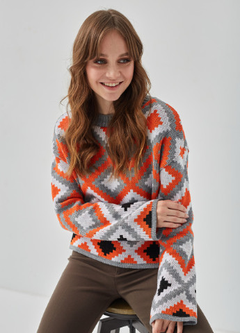 Замеры производятся по одному экземпляру джемпера вручную, поэтому допустима погрешность +-2 см.